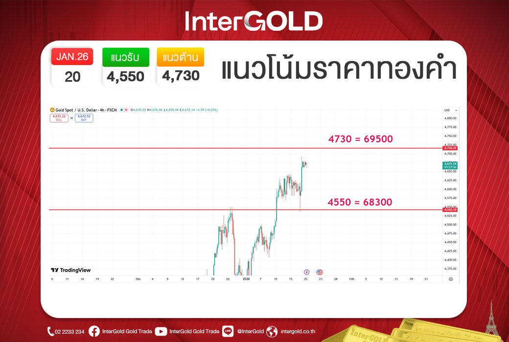 ในภาพรวม ความเสี่ยง “รัฐแทรกแซงสู่ธนาคารกลาง” และความตึงเครียดการค้าโลก เป็นแรงหนุนเชิงจิตวิทยาต่อสินทรัพย์ปลอดภัย ทำให้มุมมองเทคนิคยังให้น้ำหนักขาขึ้นต่อเนื่อง กลยุทธ์ที่แนะนำคือ “ย่อซื้อ” โดยโฟกัสแนวรับ $4,550 (68,300 บาท) เป็นจุดทยอยสะสม/แบ่งไม้ และติดตามความผันผวนจากประเด็นศาลกับเฟด รวมถึงเกมภาษีของสหรัฐฯ เป็นตัวเร่งราคา ขณะที่แนวต้านสำคัญอยู่ที่ $4,730 (69,500 บาท) ซึ่งเป็นโซนที่อาจมีแรงขายทำกำไรและต้องบริหารความเสี่ยงให้รัดกุมตามข่าวรายวัน
