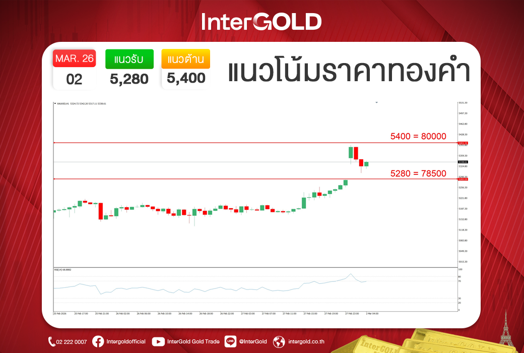 บทวิเคราะห์ราคาทองคำประจำวันที่ 02 มีนาคม 2569