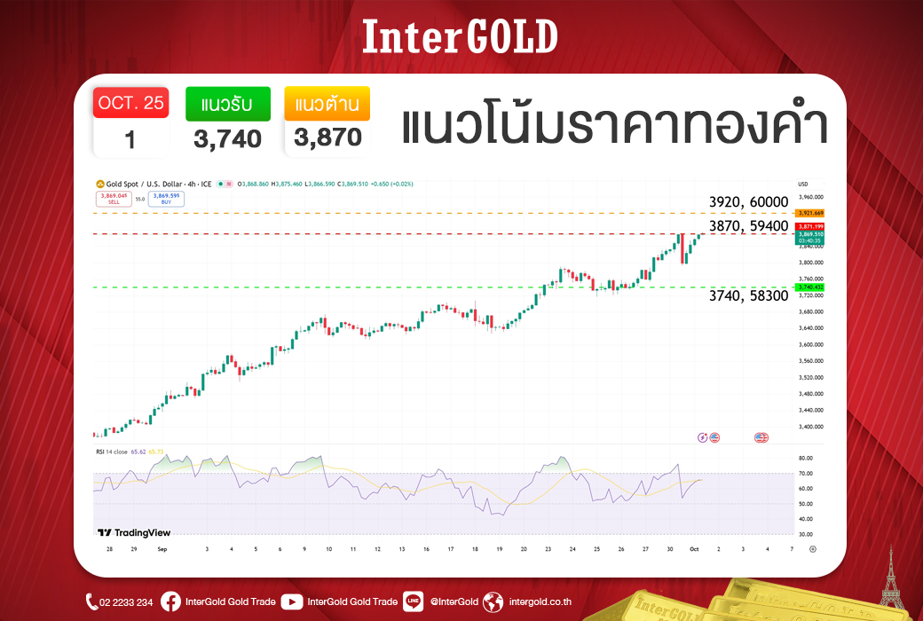บทวิเคราะห์ราคาทองคำประจำวันที่ 1 ตุลาคม 2568
