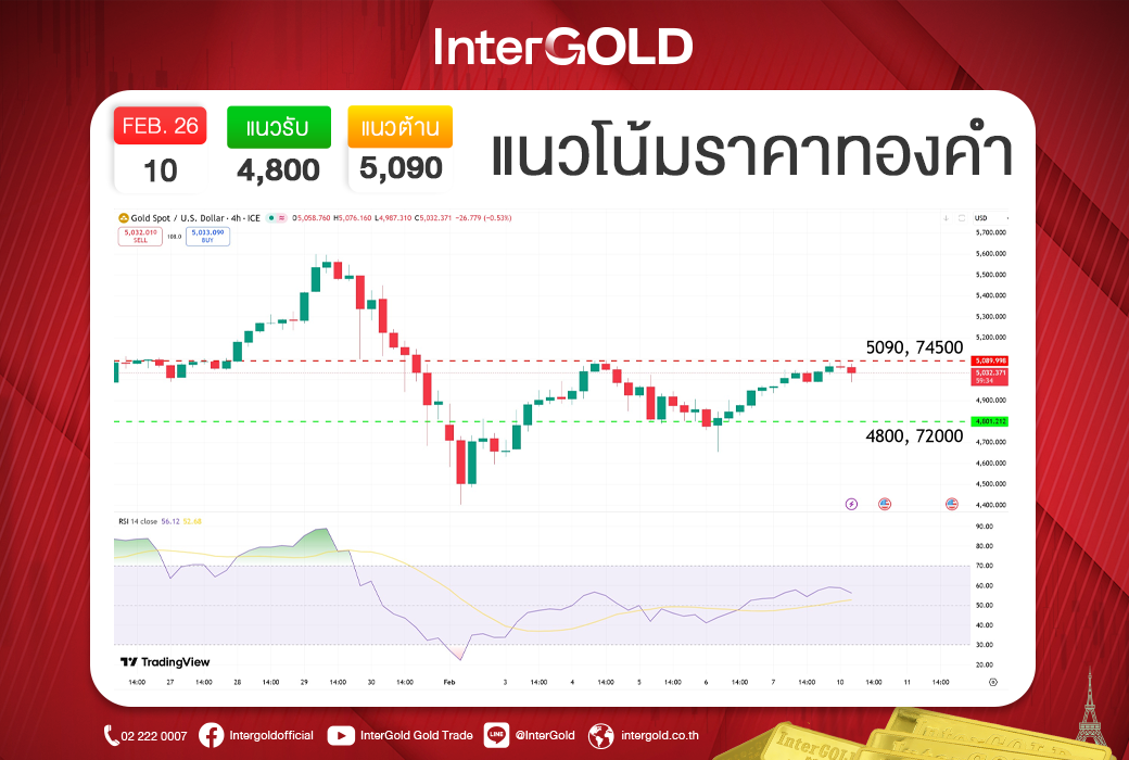 บทวิเคราะห์ราคาทองคำประจำวันที่ 10 กุมภาพันธ์ 2569