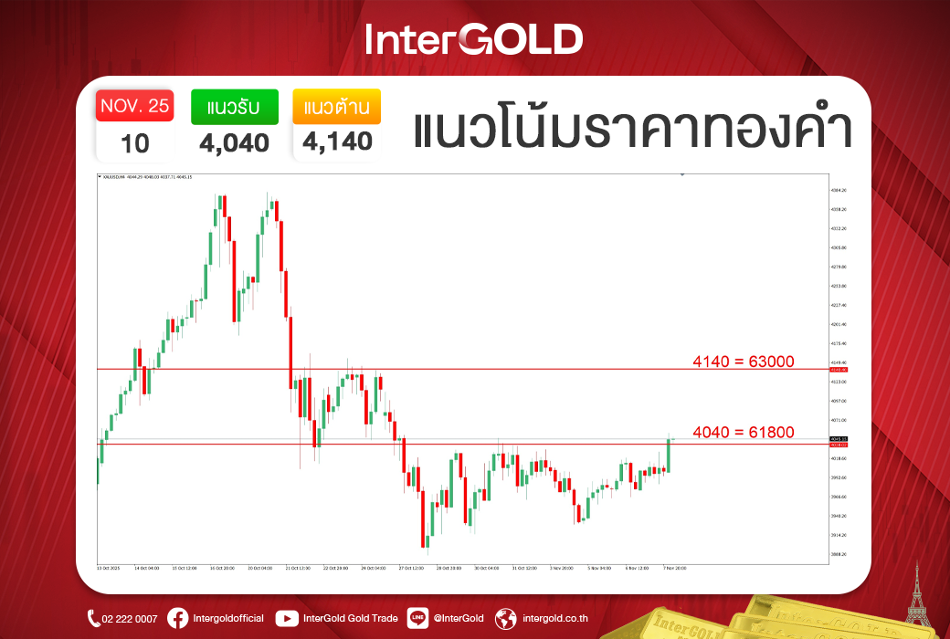 แนวโน้มทางเทคนิคในสัปดาห์นี้ถือว่าแข็งแกร่งขึ้น เพราะราคาทองสามารถปิดบวกเหนือ 4,000 ดอลลาร์ได้สำเร็จ นักวิเคราะห์มองว่ามีโอกาสเกิดการ Rebound เพื่อทดสอบแนวต้านถัดไปที่ 4,100 – 4,200 ดอลลาร์ แต่ยังต้องระวังแรงขายทำกำไรปลายสัปดาห์ เนื่องจากตลาดยังผันผวนสูง