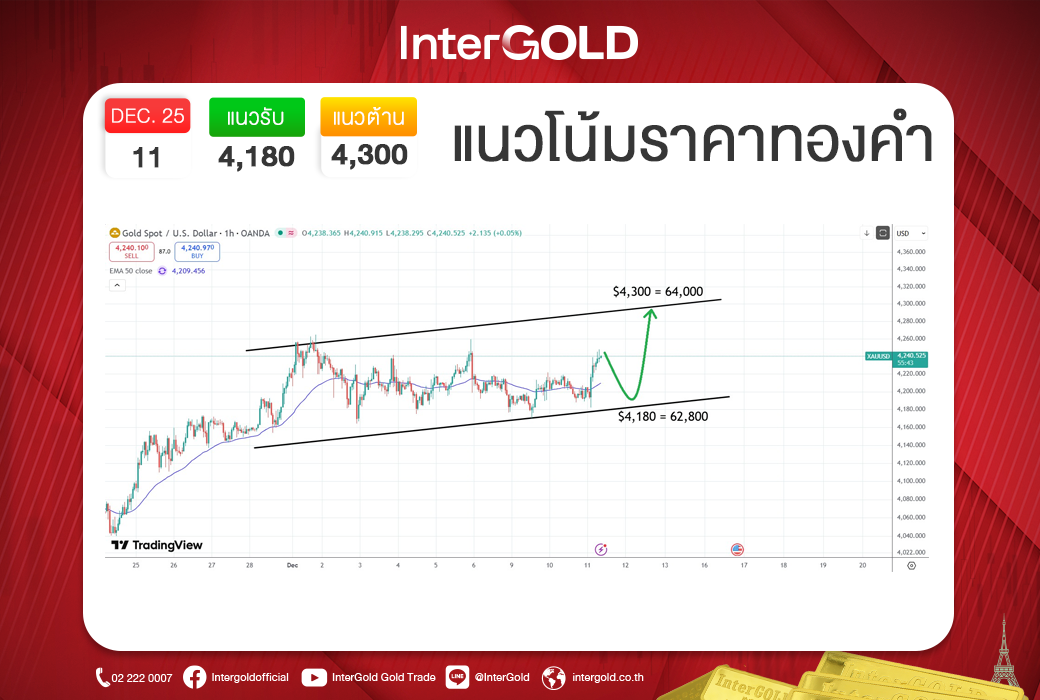 ราคาทองยังเคลื่อนไหวแบบ Sideway ภายในกรอบ $4,180 – $4,300 โดยจุดสำคัญคือ การดีดกลับจากโซนรับ $4,180 ขึ้นมายืนเหนือเส้นค่าเฉลี่ย EMA50 ได้อีกครั้ง สะท้อนแรงซื้อที่เริ่มกลับเข้ามา ขณะที่ปัจจัยพื้นฐานหลายด้านยังเอียงเชิงบวก ทั้งดอกเบี้ยขาลง ดอลลาร์อ่อน และความไม่แน่นอนทางนโยบายการเงิน ซึ่งเป็นสภาพแวดล้อมที่ทองคำมักปรับตัวได้ดี แม้กระแส risk-on ในตลาดหุ้นอาจกดดันเล็กน้อย แต่โดยรวมทองยังมีฐานรับแข็งแรงจากฝั่งเอเชียและแรงป้องกันความเสี่ยงของนักลงทุนทั่วโลก