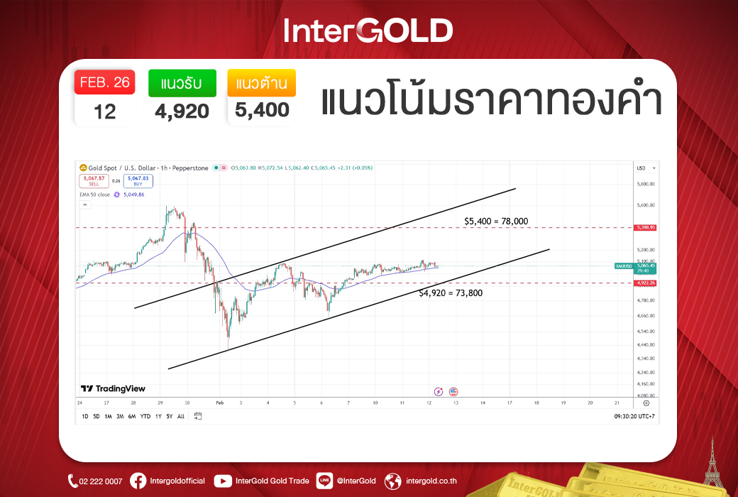 บทวิเคราะห์ราคาทองคำประจำวันที่ 12 กุมภาพันธ์ 2569