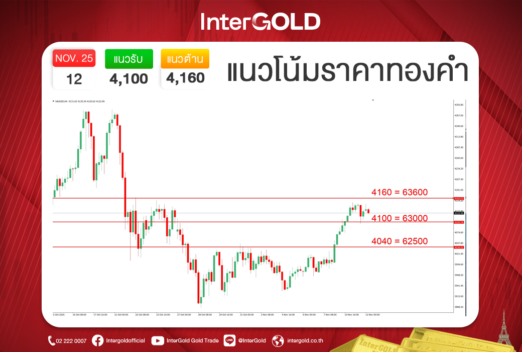 บทวิเคราะห์ราคาทองคำประจำวันที่ 12 พฤศจิกายน 2568