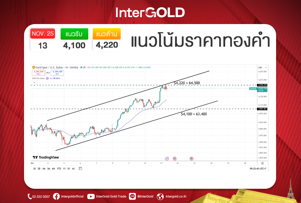 บทวิเคราะห์ราคาทองคำประจำวันที่ 13 พฤศจิกายน 2568
