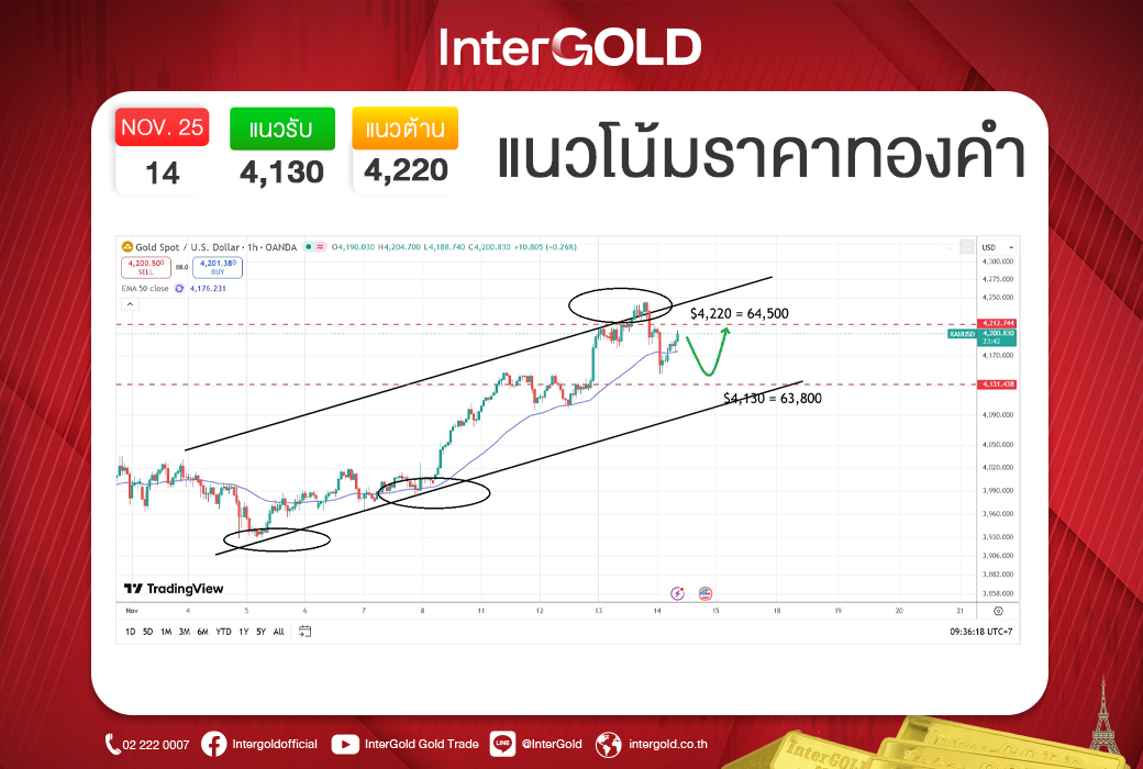 บทวิเคราะห์ราคาทองคำประจำวันที่ 14 พฤศจิกายน 2568