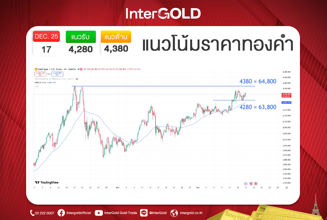บทวิเคราะห์ราคาทองคำประจำวันที่ 17 ธันวาคม 2568