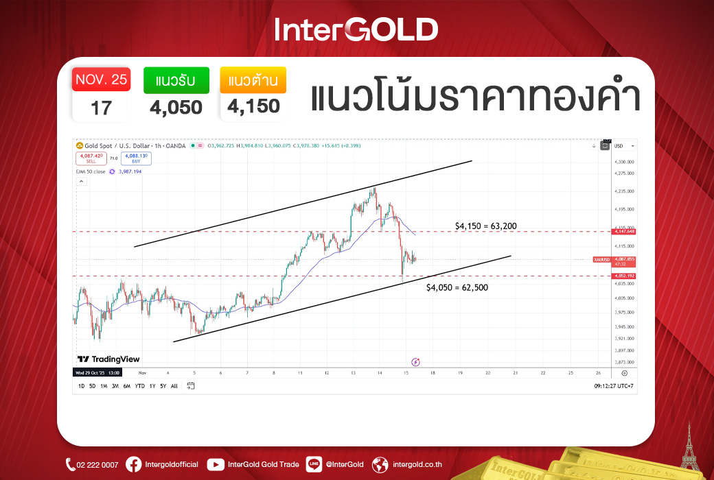 บทวิเคราะห์ราคาทองคำประจำวันที่ 17 พฤศจิกายน 2568