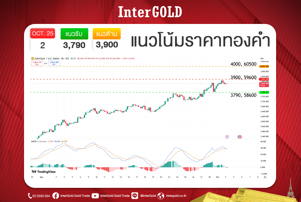 แนวต้าน : $3,900 / 59,600 บาท (ต้านจิตวิทยา ผ่านได้ลุ้นเป้าใหญ่)