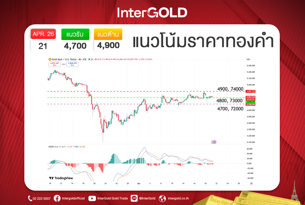 บทวิเคราะห์ราคาทองคำประจำวันที่ 21 เมษายน 2569