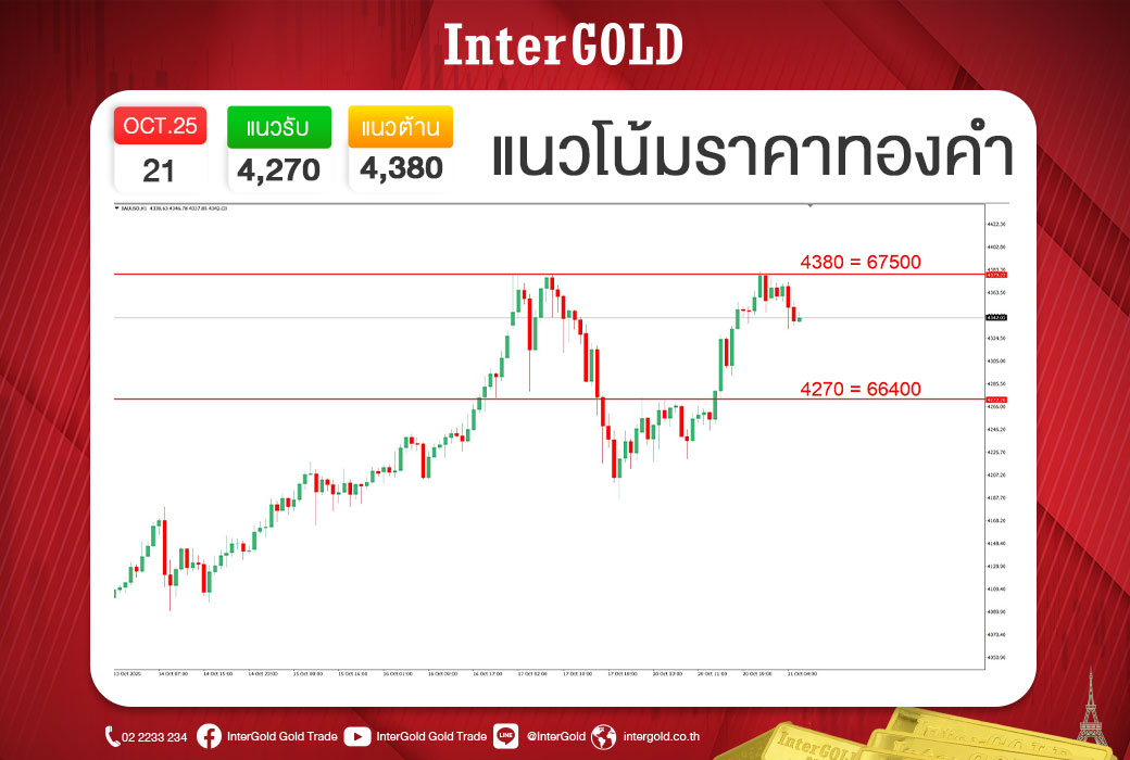 ในด้านปัจจัยพื้นฐาน ตลาดยังคงจับตาการประชุมธนาคารกลางสหรัฐฯ (Fed) วันที่ 30 ตุลาคม ซึ่งมีแนวโน้มจะปรับลดอัตราดอกเบี้ยอีกครั้ง ถือเป็นแรงหนุนสำคัญต่อราคาทองคำ แต่ก็ต้องระวังแรงขายทำกำไรแบบ “Sell on News” เพราะข่าวนี้ถูกสะท้อนในราคามาแล้วระยะหนึ่ง นอกจากนี้ ยังมีประเด็นเสี่ยงจากภาวะ Government Shutdown ของสหรัฐฯ และสงครามการค้าระหว่างสหรัฐฯ–จีน ที่อาจกลับมากระทบตลาดในเดือนหน้า