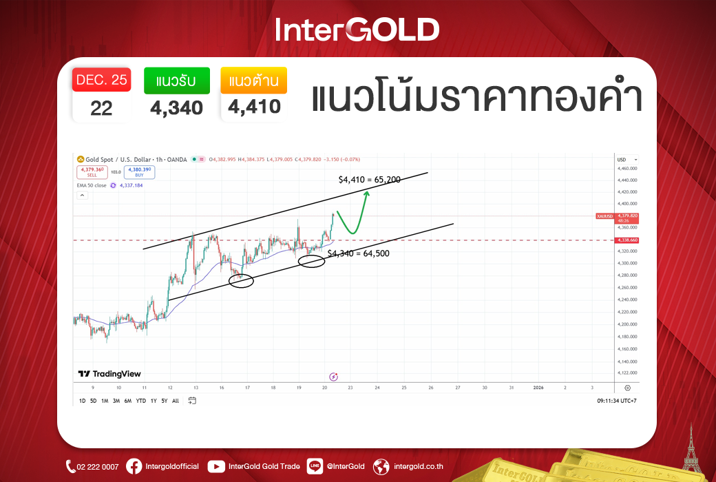 กลยุทธ์หลักยังคงเป็นฝั่ง Uptrend โดยเน้นการเข้าซื้อฝั่งขาขึ้น หากราคาย่อตัวลงใกล้แนวรับ $4,340 หรือบริเวณ 64,500 บาท ถือเป็นจังหวะสะสมที่ได้เปรียบ และหากราคาปรับตัวขึ้นต่อ สามารถทยอยทำกำไรบริเวณแนวต้าน $4,410 หรือประมาณ 65,200 บาท โดยเน้นการถือฝั่งซื้อเป็นหลัก ตราบใดที่โครงสร้างราคายังไม่หลุดแนวรับสำคัญ