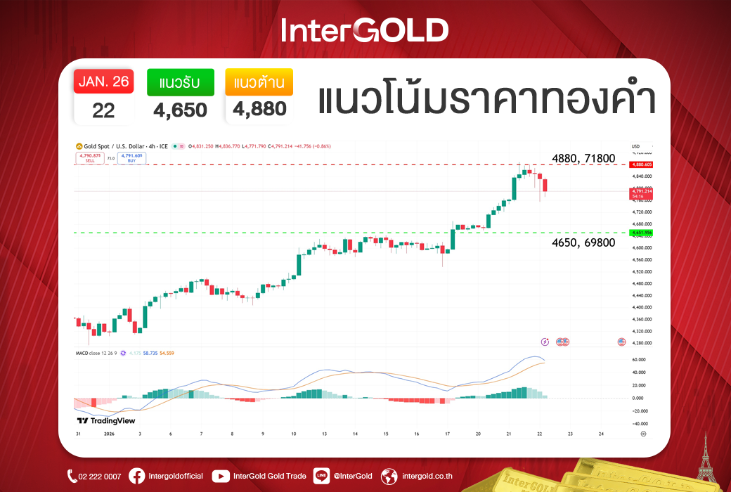 บรรยากาศตลาดกลับมาเป็นโหมด “คลายกังวล” หลังสหรัฐฯ ส่งสัญญาณพักรบทางการค้ากับยุโรป ด้วยการยกเลิกภาษีที่เดิมจะเริ่ม 1 ก.พ. และหันไปเน้นการเจรจาเชิงยุทธศาสตร์เรื่องกรีนแลนด์ ทำให้แรงซื้อทองในฐานะ Safe Haven อ่อนตัวลง ขณะเดียวกันภาพรวมตลาดการเงินออกแนว Risk-on ชัดขึ้น เมื่อหุ้นสหรัฐฯ โดยเฉพาะ S&P 500 และ Nasdaq ทำจุดสูงใหม่จากทั้งข่าวกรอบข้อตกลงการค้าและผลประกอบการที่แข็งแรง เม็ดเงินจึงมีแนวโน้มไหลไปหาสินทรัพย์เสี่ยงมากกว่าทองคำ นอกจากนี้ยังเห็นสัญญาณเศรษฐกิจโลกที่ “ยังคึก” จากการที่ IEA ปรับเพิ่มคาดการณ์อุปสงค์น้ำมันปี 2026 และกระแสลงทุนโครงสร้างพื้นฐาน AI ของบิ๊กเทคอย่าง Google/Nvidia ในเอเชีย ยิ่งลดเหตุผลในการถือทองเพื่อกันความเสี่ยงในมุมของนักลงทุนระยะสั้น