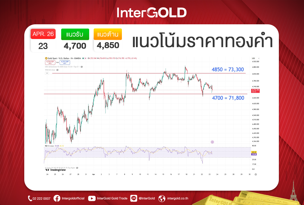 บทวิเคราะห์ราคาทองคำประจำวันที่ 23 เมษายน 2569