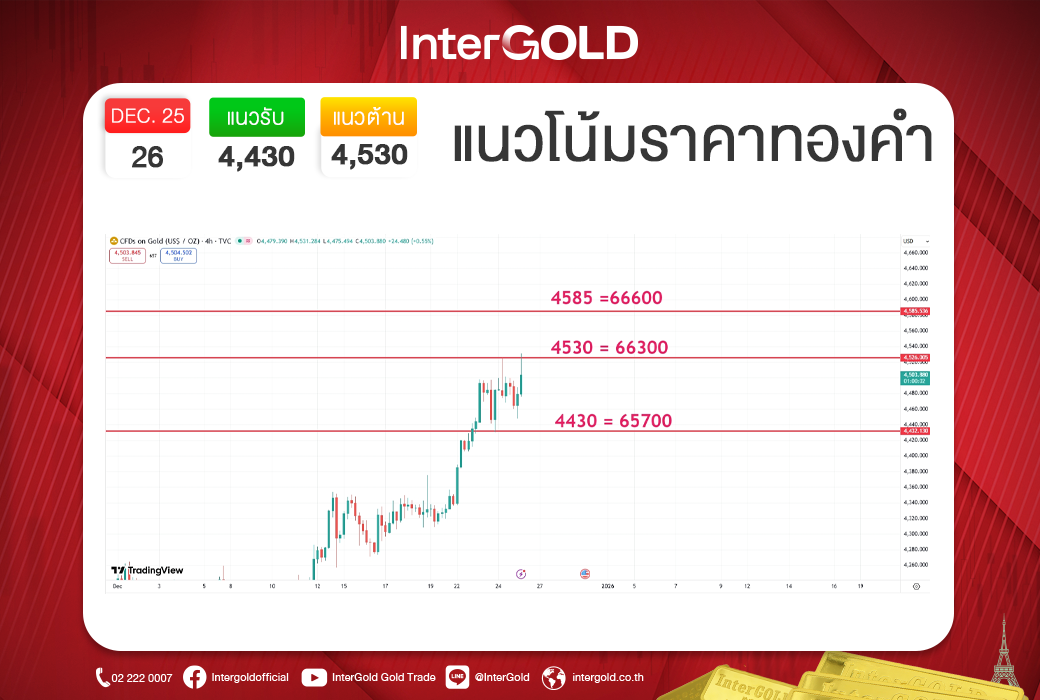 บทวิเคราะห์ราคาทองคำประจำวันที่ 26 ธันวาคม 2568