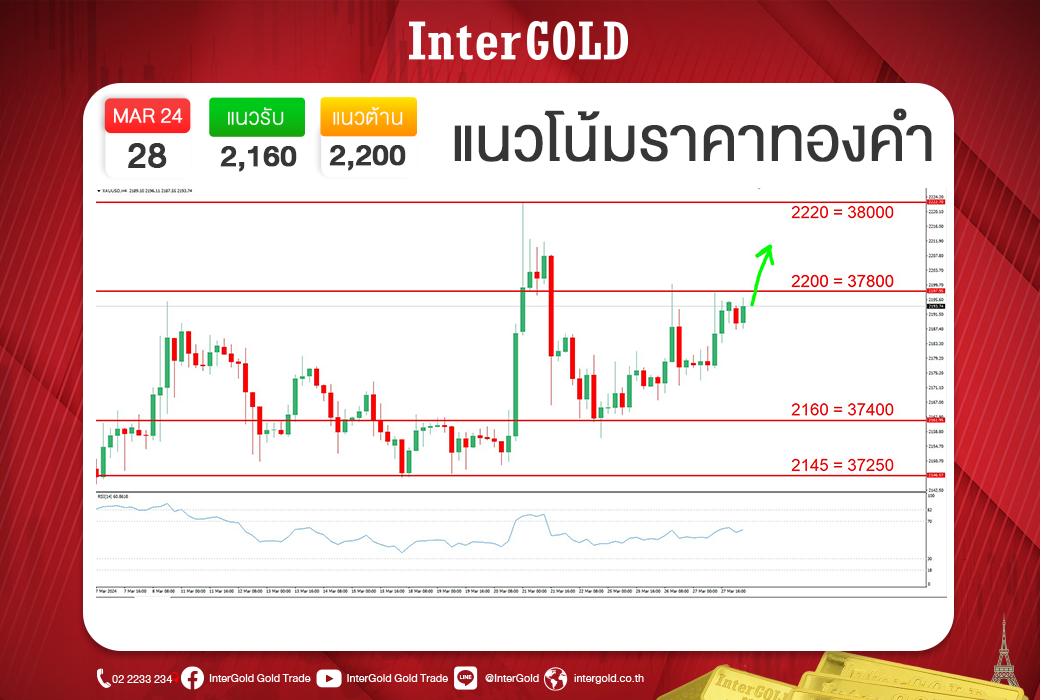 แนะนำ เข้าซื้อหรือรอย่อลงมาที่ $2,160 และไปขายทำกำไรที่โซน $2,200
