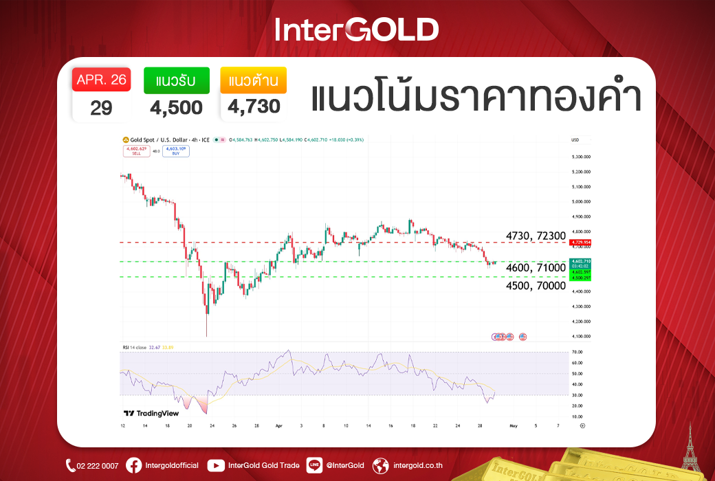 บทวิเคราะห์ราคาทองคำประจำวันที่ 29 เมษายน 2569
