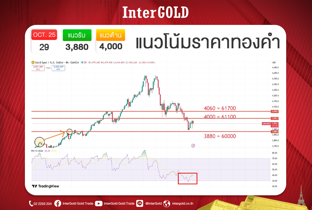 - แต่ถ้าราคาหลุด 3,950 ดอลลาร์ ให้ระวังแรงขายทำกำไรซ้ำ เพราะโมเมนตัมจะกลับมาเป็นขาลงอีกครั้ง